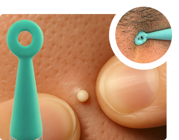 Our patent-pending SoftSqueeze™ Technology features soft elastomer loops that deform under vertical pressure, generating circumferential compression to extract impurities with minimal skin trauma. Engineered for precision, comfort, and sensitive skin.