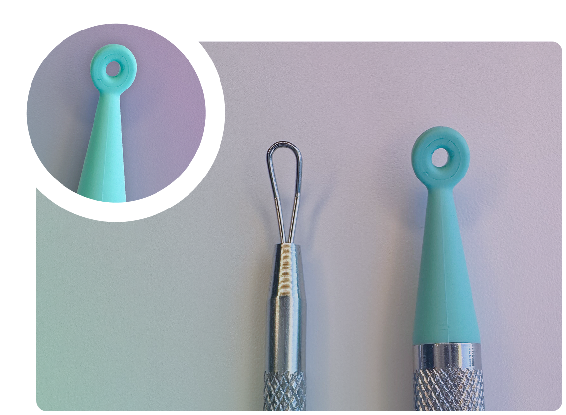 Halo’s SoftSqueeze™ loop gently flexes and compresses around the pore, releasing whiteheads and surface-level blackheads with less pressure and greater control — no harsh scraping, no sharp edges.